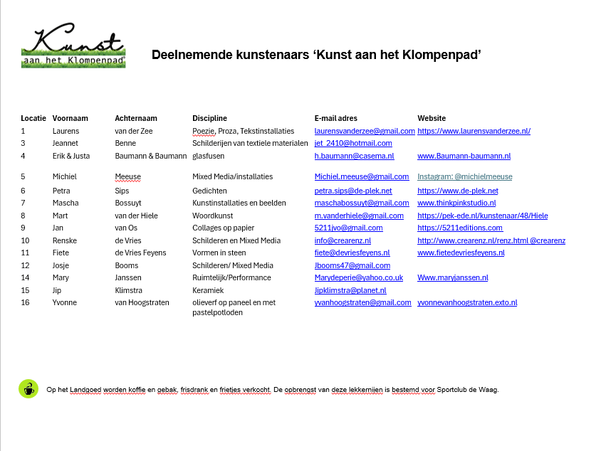 Kunst aan het Klompenpad 2025 wordt mede mogelijk gemaakt door: